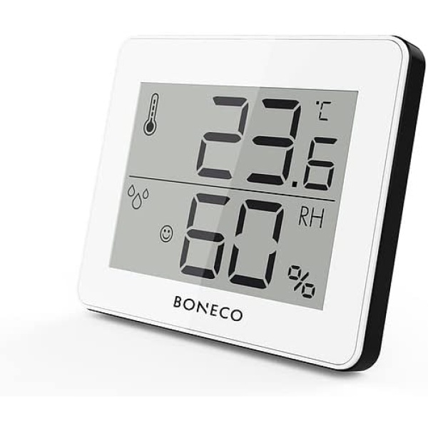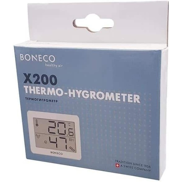 BONECO X200 to precyzyjny termo-higrometr cyfrowy, który mierzy temperaturę i wilgotność powietrza w pomieszczeniu. Kompaktowe urządzenie z czytelnym wyświetlaczem pozwala na bieżąco kontrolować parametry klimatu w domu lub biurze.